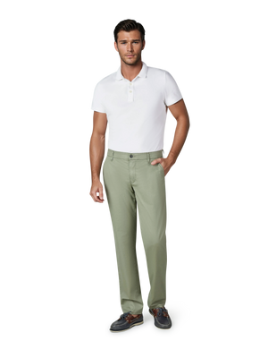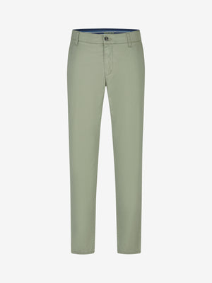 Bequeme Flat Front-Hose mit elastischem Komfortbund und Hemdstopper. Der Clou: In der rechten Vordertasche ist eine separate "Mobile Pocket" eingearbeitet, in der man sein Smartphone kratzsicher und schnell griffbereit unterbringen kann. Gefertigt aus einer ultraleichten, hochelastischen High Stretch-Baumwolle in schöner Double Dye-Färbung. Gewicht: 255 g/lfm Das Modell bietet eine normale Leibhöhe und wegen der schmaleren Fußweite einen schlankeren Beinverlauf