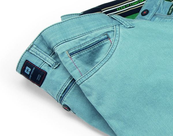 Bequeme Swing-Pocket mit elastischem Comfortbund und Hemdstopper. Gefertigt aus superelastischem Bi-Stretch-Denim, der in Längs- und Querrichtung hochelastisch ist. Dank einer T400-Beimischung bleibt die Hose trotz extremer Elastizität absolut formstabil. Gewicht: 570 g/lfm Das Modell verfügt über eine normale Leibhöhe und ein schlankes Bein bei schmaler Fußweite.