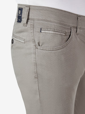 Bequeme Swing-Pocket mit elastischem Comfortbund und Hemdstopper. Die doppelt paspelierte Münztasche bringt einen Hauch Sportivität in den Look. Gefertigt aus einem leichten Baumwoll-High Stretch mit Mikro-Print. Der auffällige Druck bringt Dynamik in den Look. Gewicht: 270 g/lfm Das Modell verfügt über eine normale Leibhöhe und ein schlankes Bein bei schmaler Fußweite.